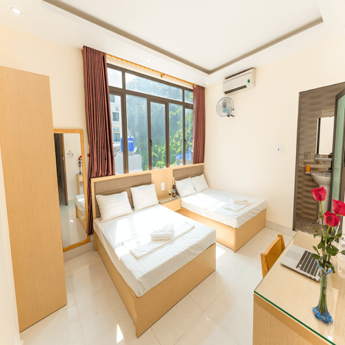 khách sạn có tổng cộng 14 phòng. Toàn bộ là phòng private và có cửa sổ hướng view: view núi, view đường phố. trong đó có 8 phòng Deluxe family ( Phòng 2 giường đôi ở tối đa 4 người lớn + 2 trẻ em) và 6 phòng Deluxe double ( phòng 1 giường đôi ở tối đa 2 người lớn + 1 trẻ em)