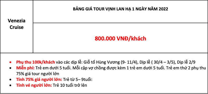 Trải nghiệm Tour du thuyền Venezia thăm vịnh Lan Hạ 1 ngày với lịch trình phong phú & tận hưởng dịch vụ trọn gói bao gồm:
